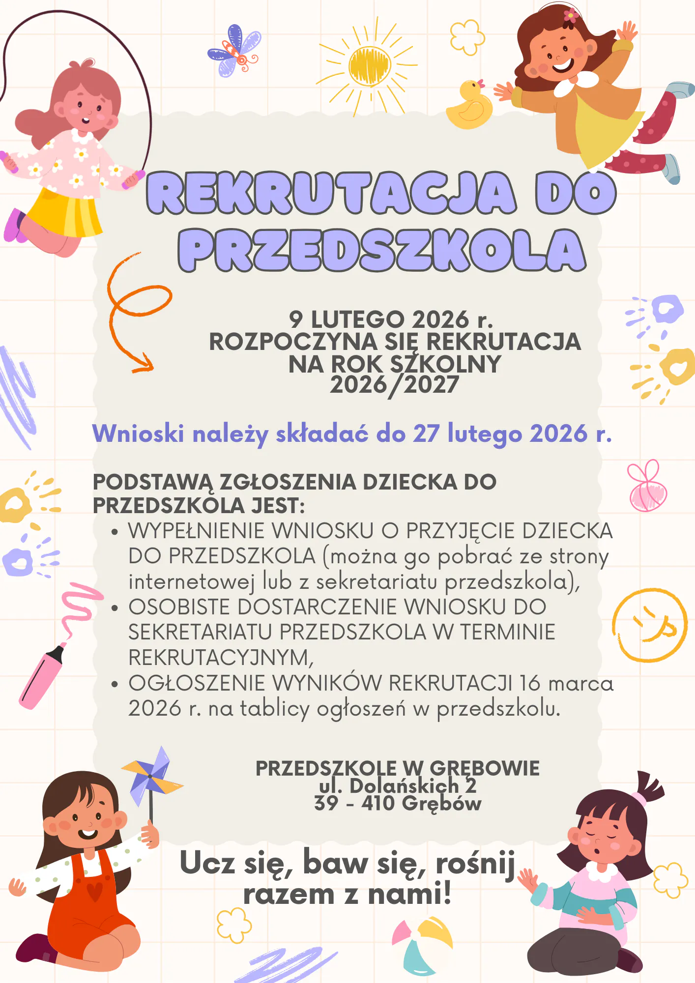 Zgodnie z Zarządzeniem Wójta Gminy Grębów Nr 18.2025 z dnia 23 stycznia 2025 r. Przedszkole