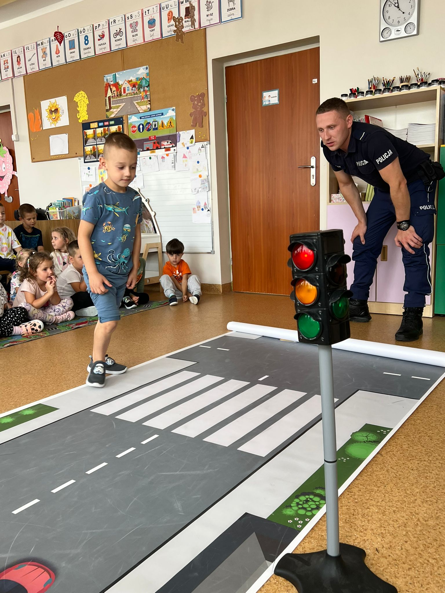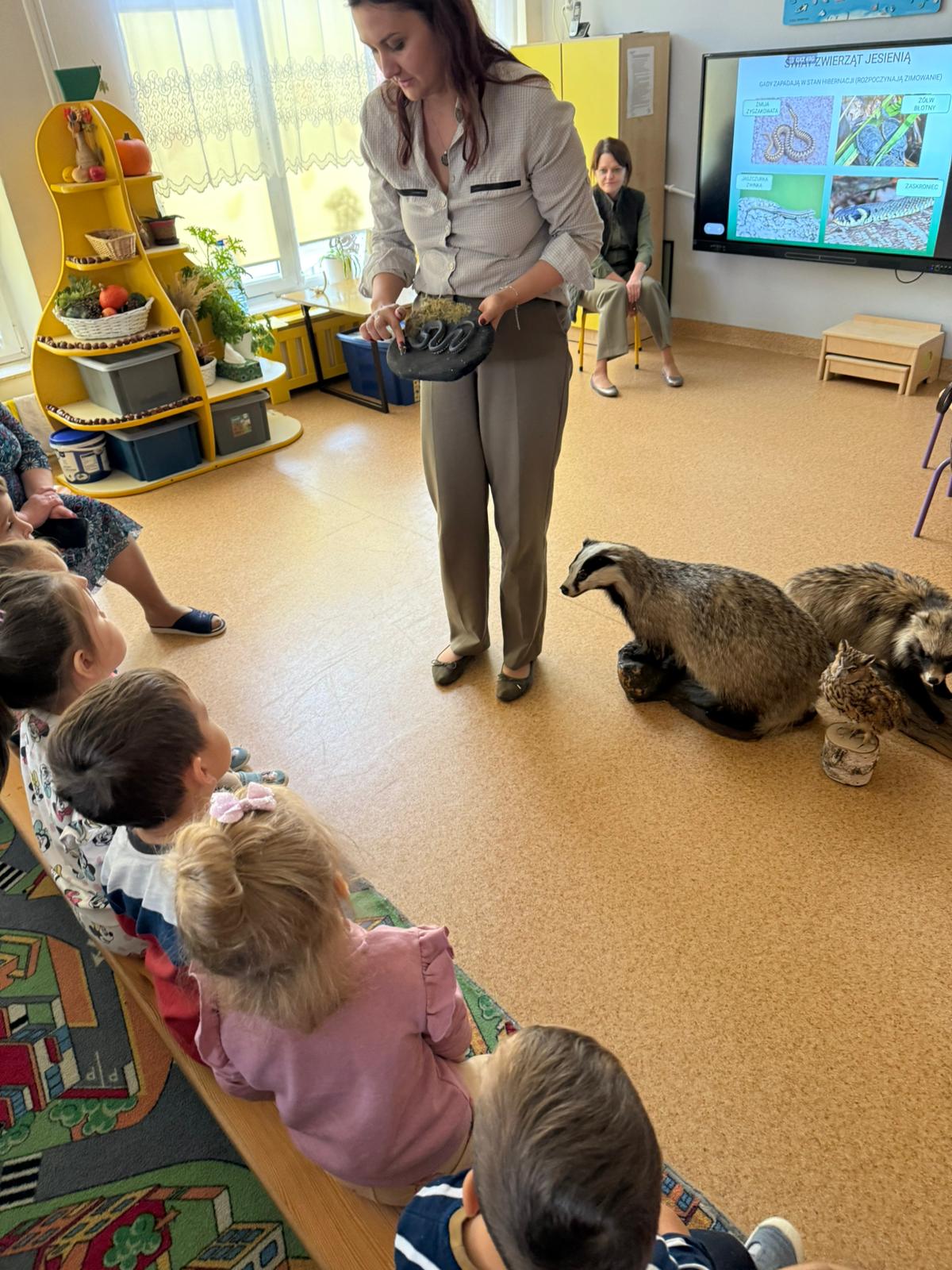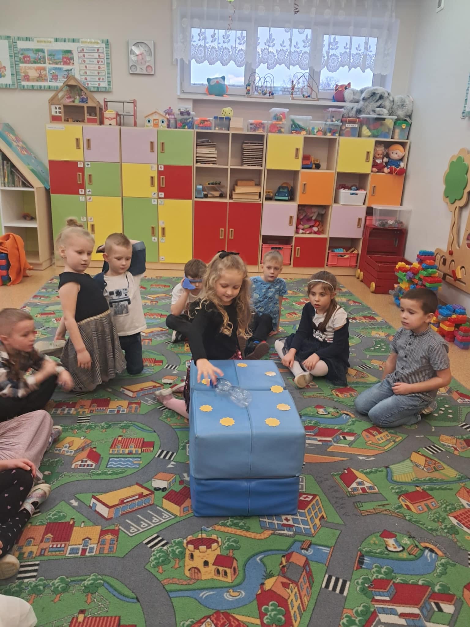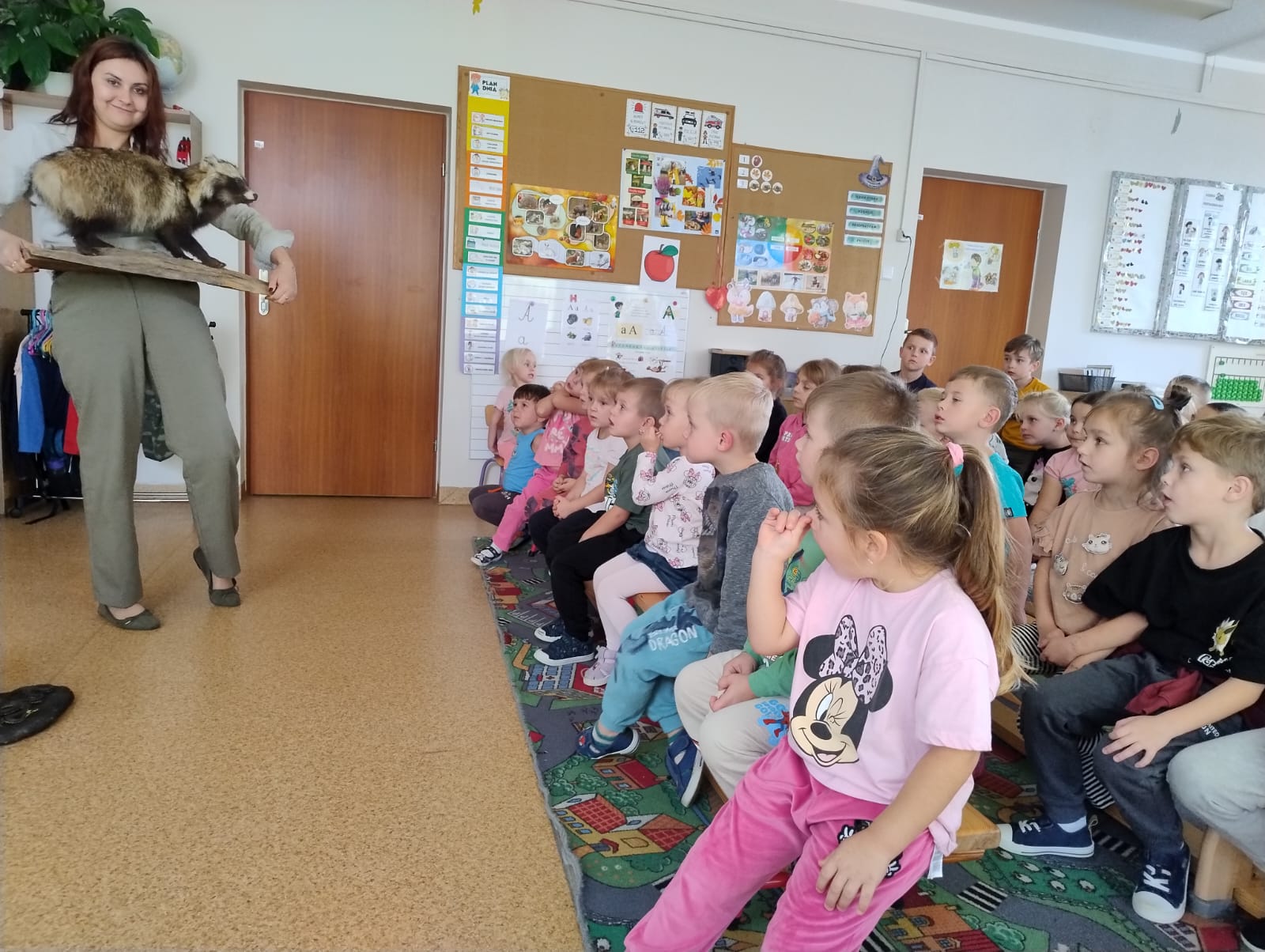 W naszym przedszkolu odbyło się wyjątkowe spotkanie z Panem Mateuszem – policjantem z Posterunku Policji w Grębowie. Tematem przewodnim była bezpieczna droga do przedszkola oraz zasady, które każdy mały przedszkolak powinien znać, aby czuć się bezpiecznie. Podczas spotkania Pan Mateusz przybliżył dzieciom swoją codzienną pracę.Przedszkolaki z ogromnym zainteresowaniem oglądały policyjne wyposażenie, zadawały wiele pytań i chętnie dzieliły się swoimi spostrzeżeniami.
