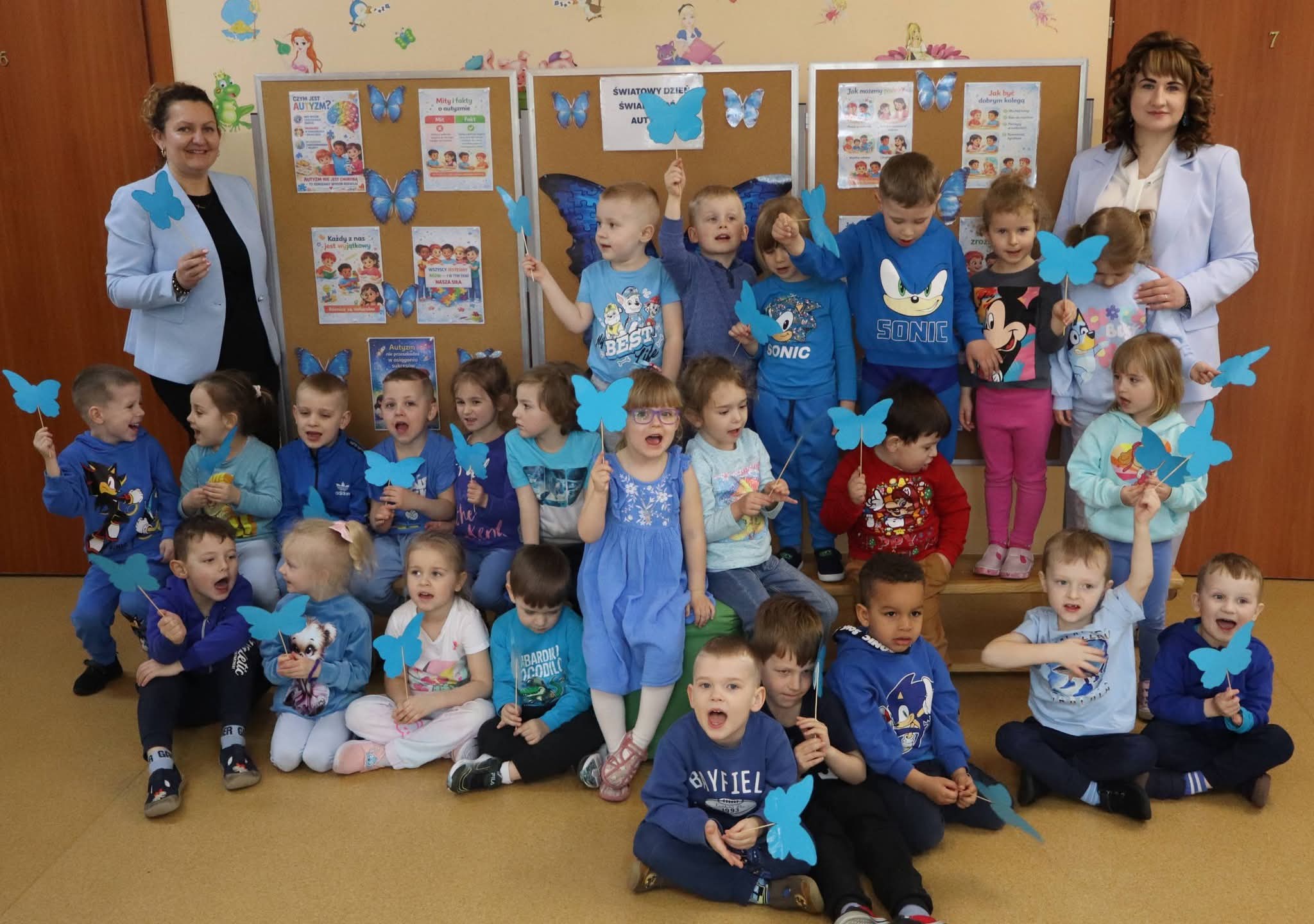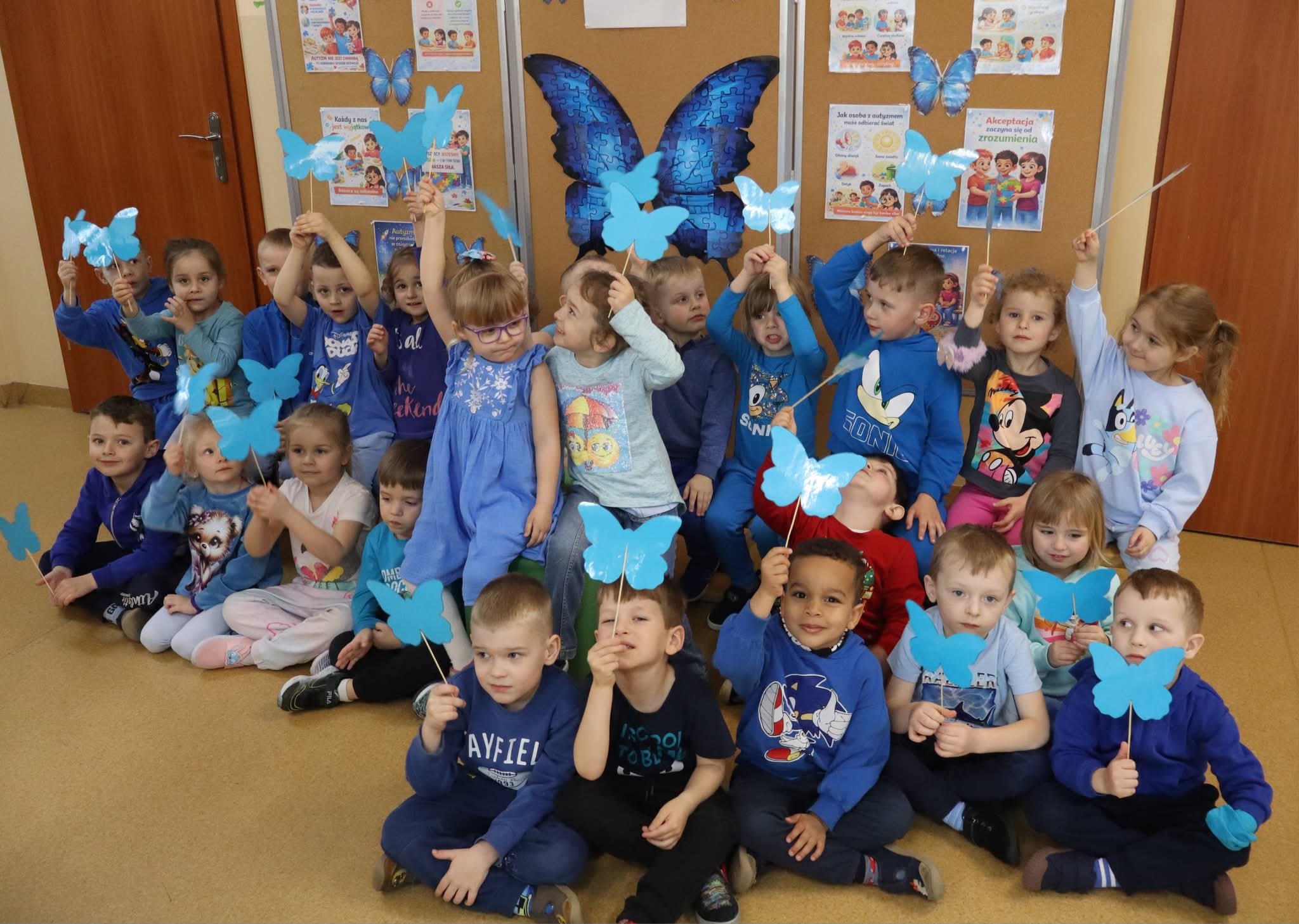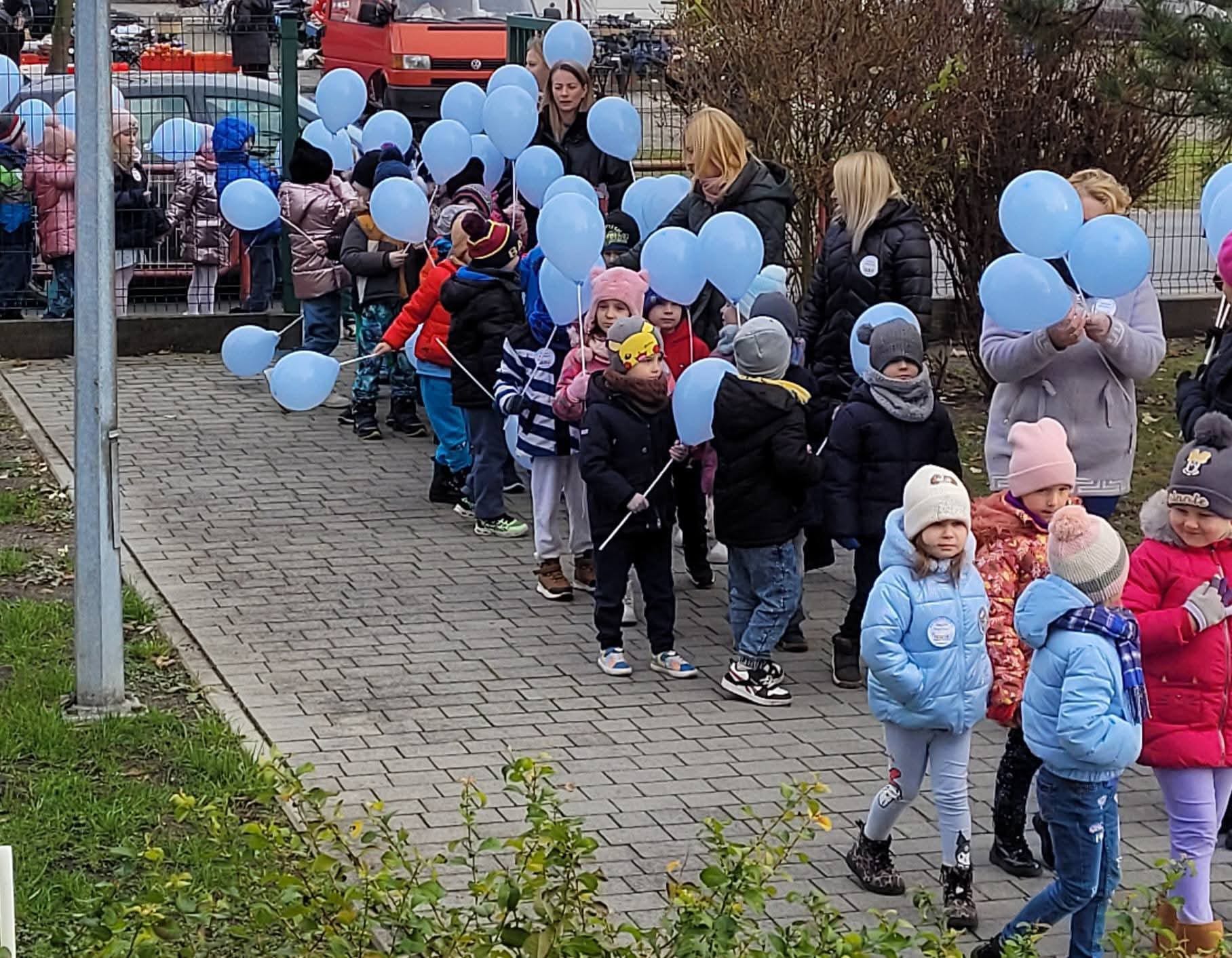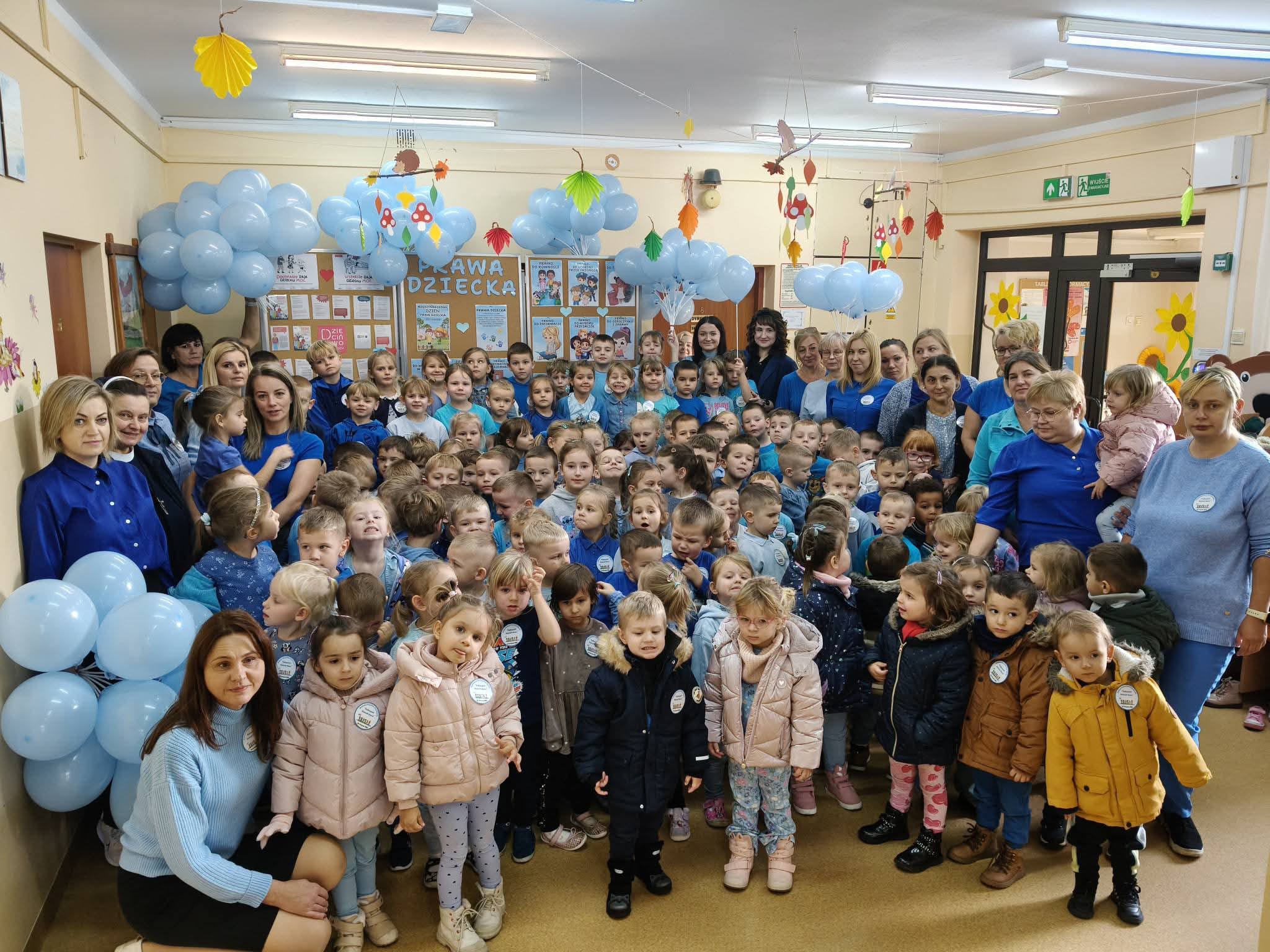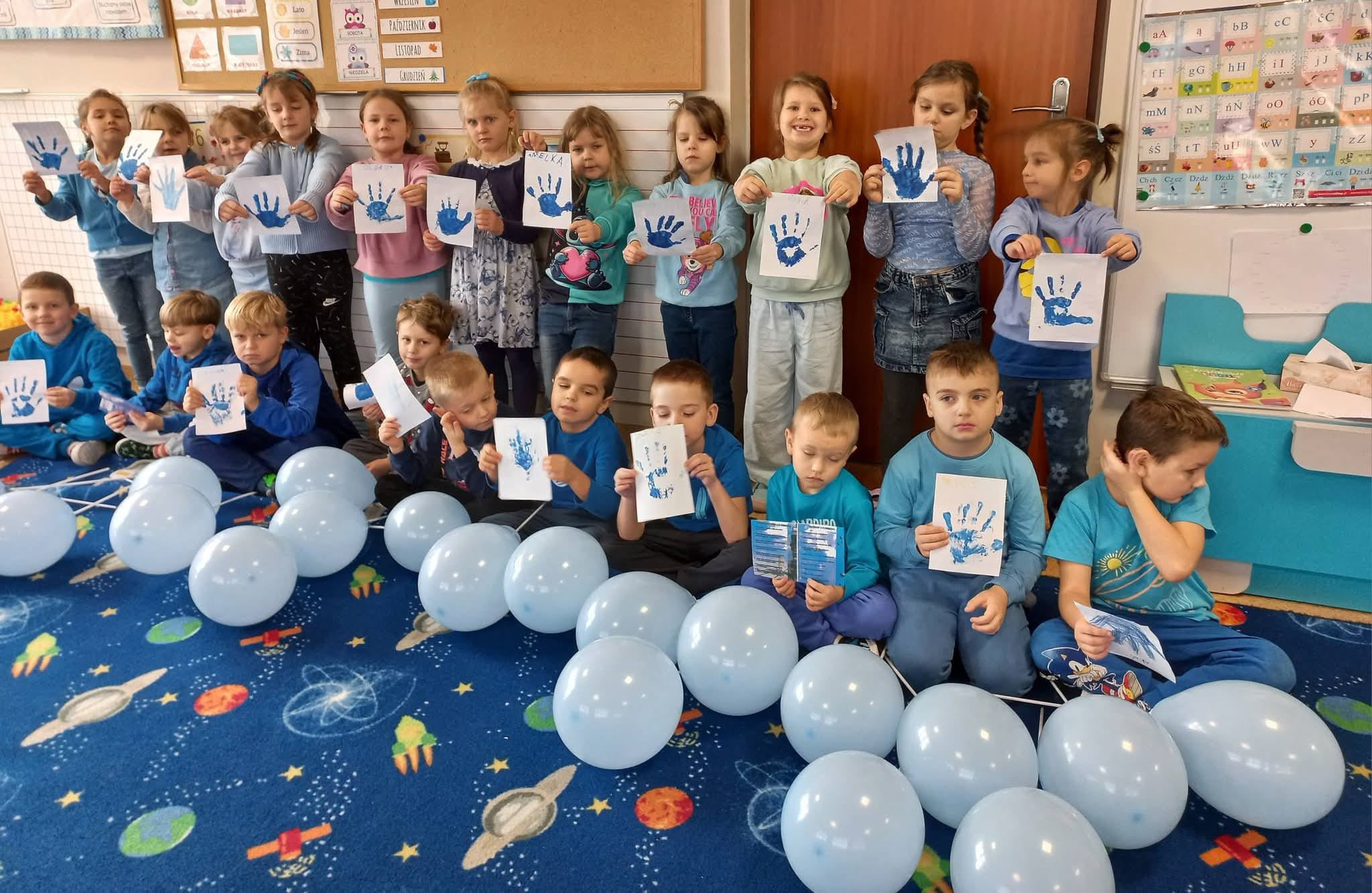 Dziś nasze Przedszkole rozbłysło na niebiesko. Wszystkie przedszkolaki oraz pracownicy ubrali się w tym kolorze, by okazać solidarność i wsparcie dla Osób ze Spektrum Autyzmu.