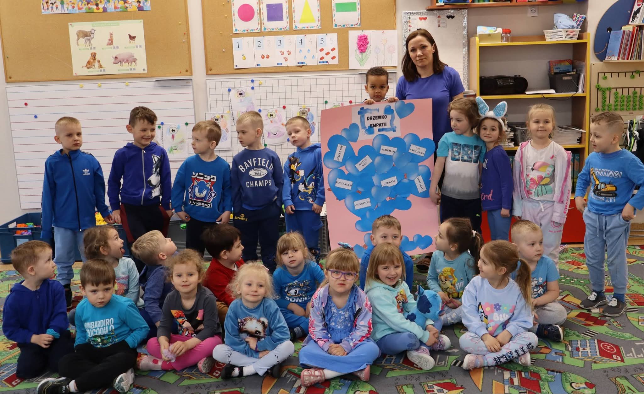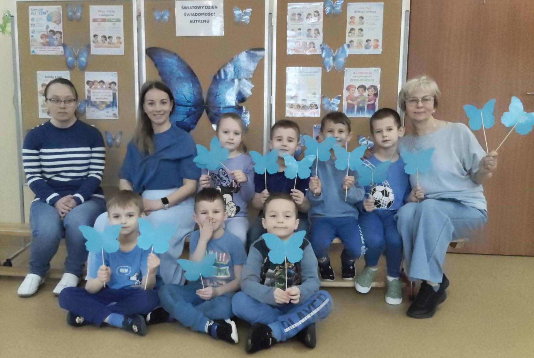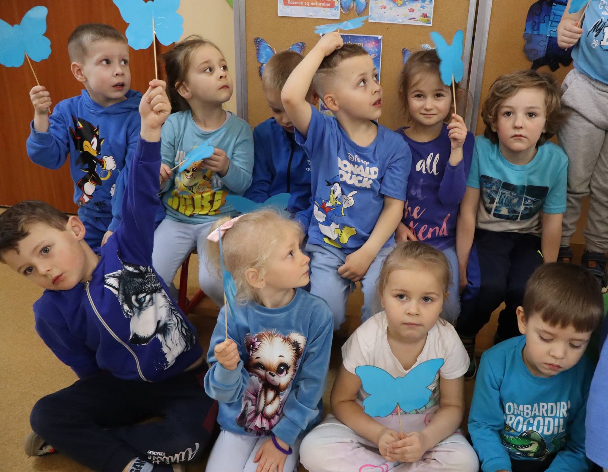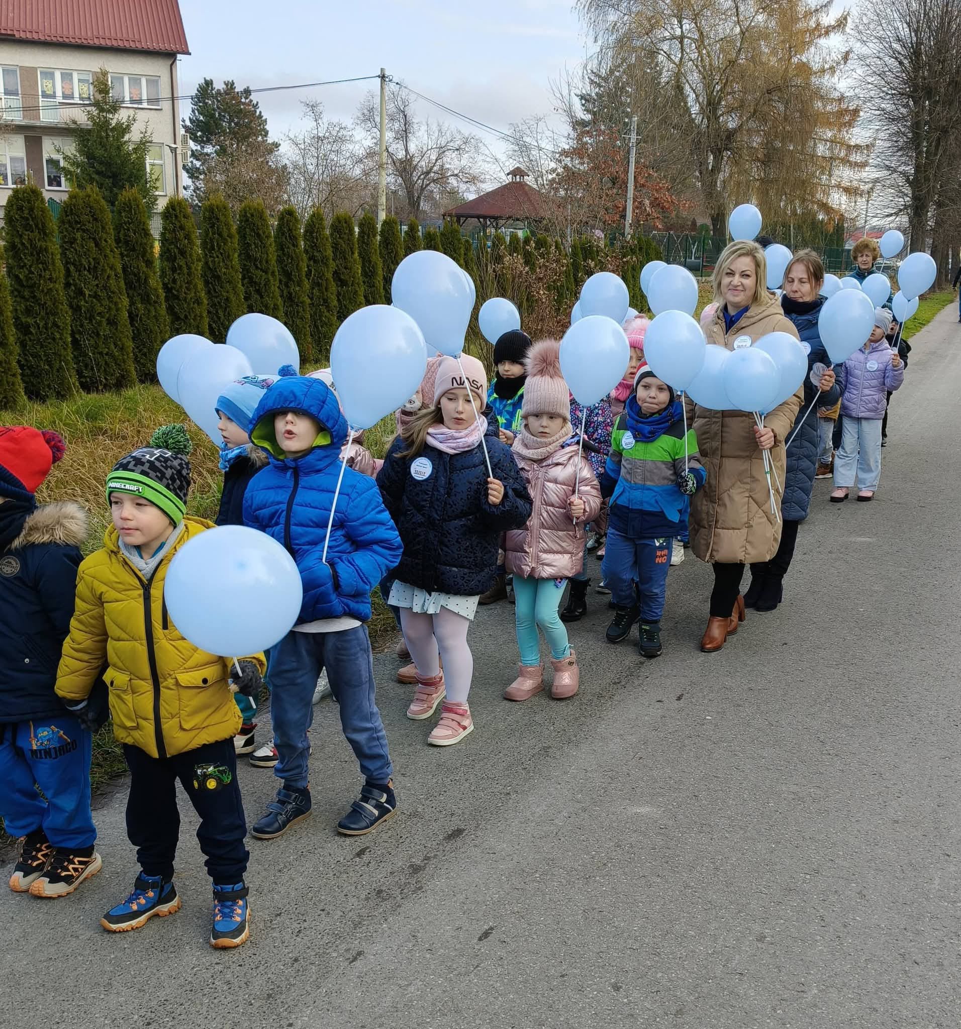 Dziś nasze Przedszkole rozbłysło na niebiesko. Wszystkie przedszkolaki oraz pracownicy ubrali się w tym kolorze, by okazać solidarność i wsparcie dla Osób ze Spektrum Autyzmu.