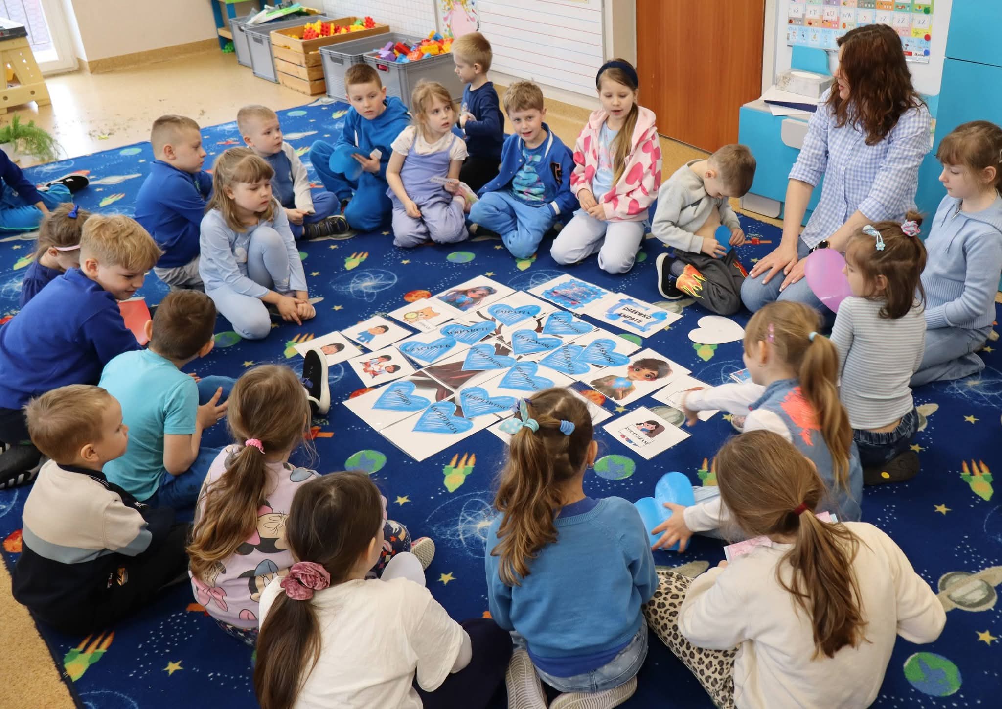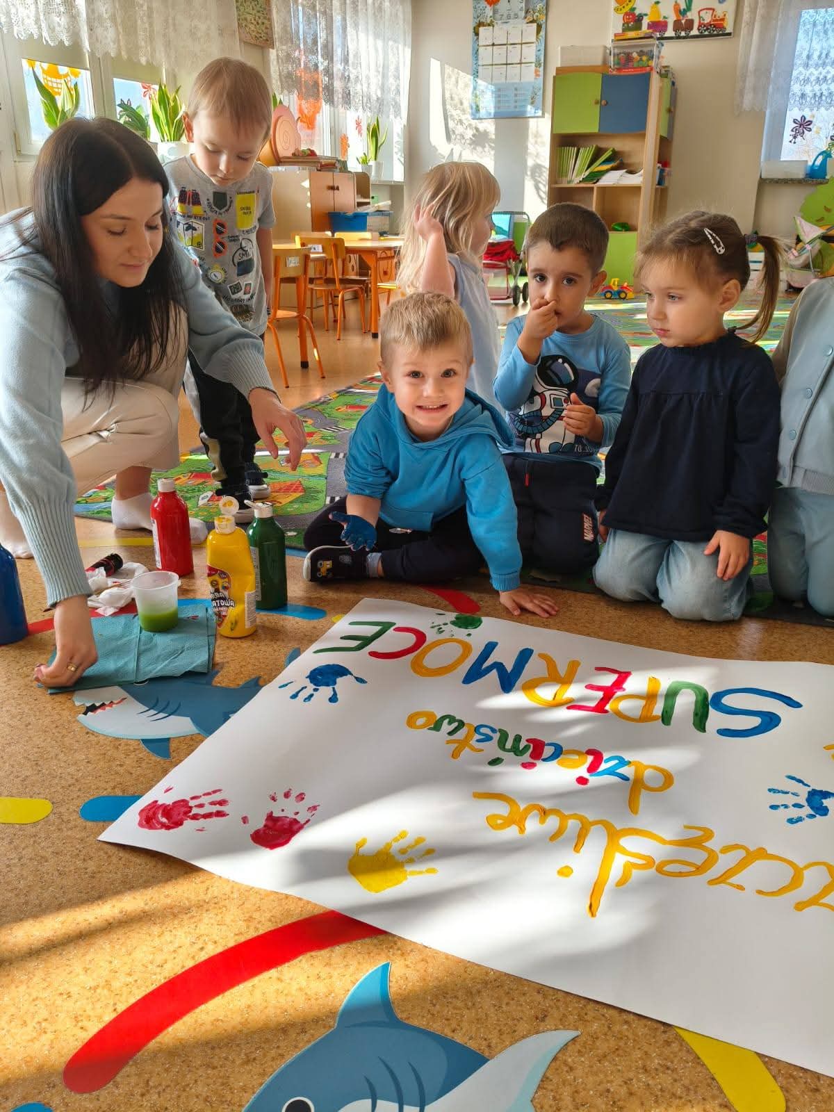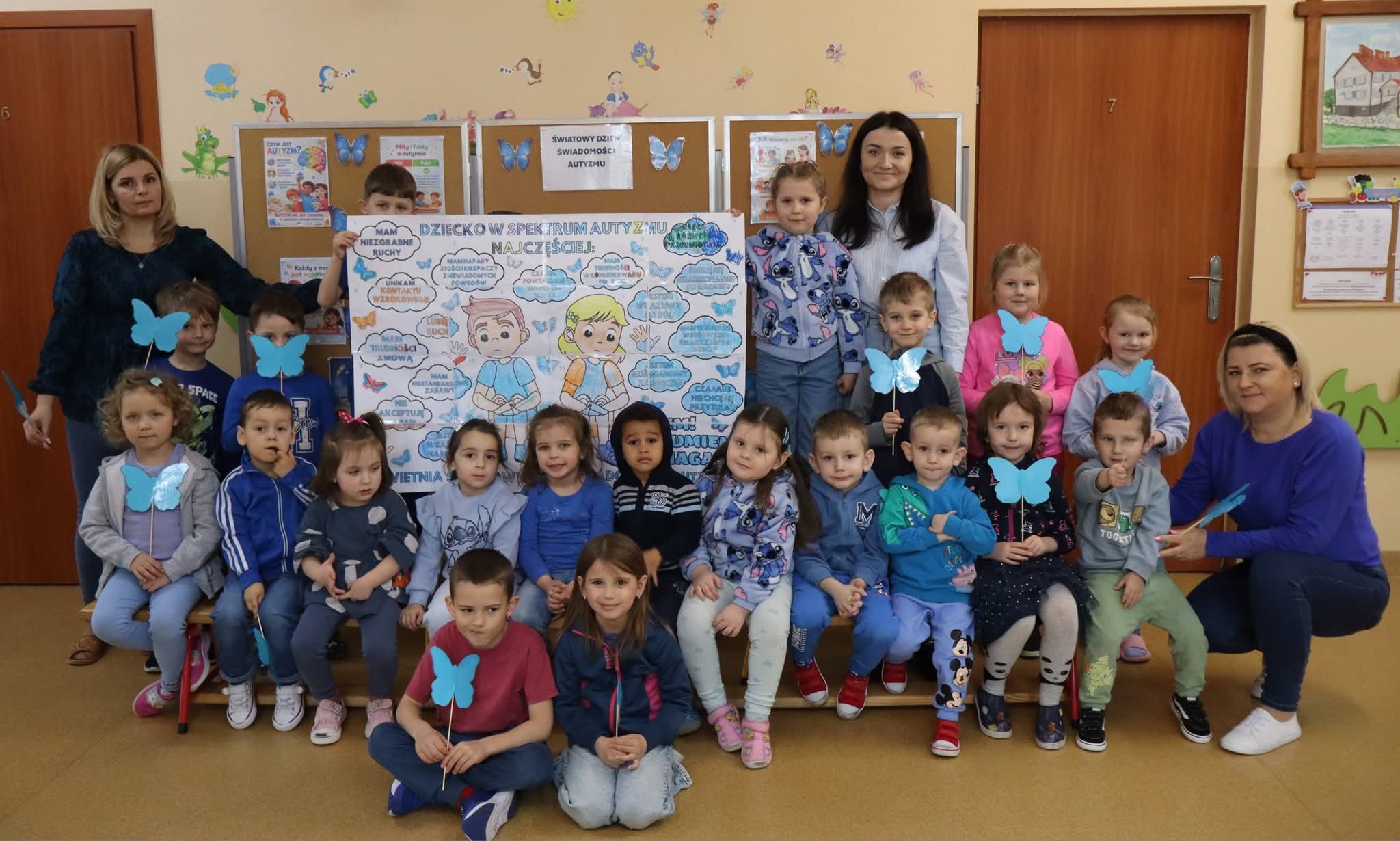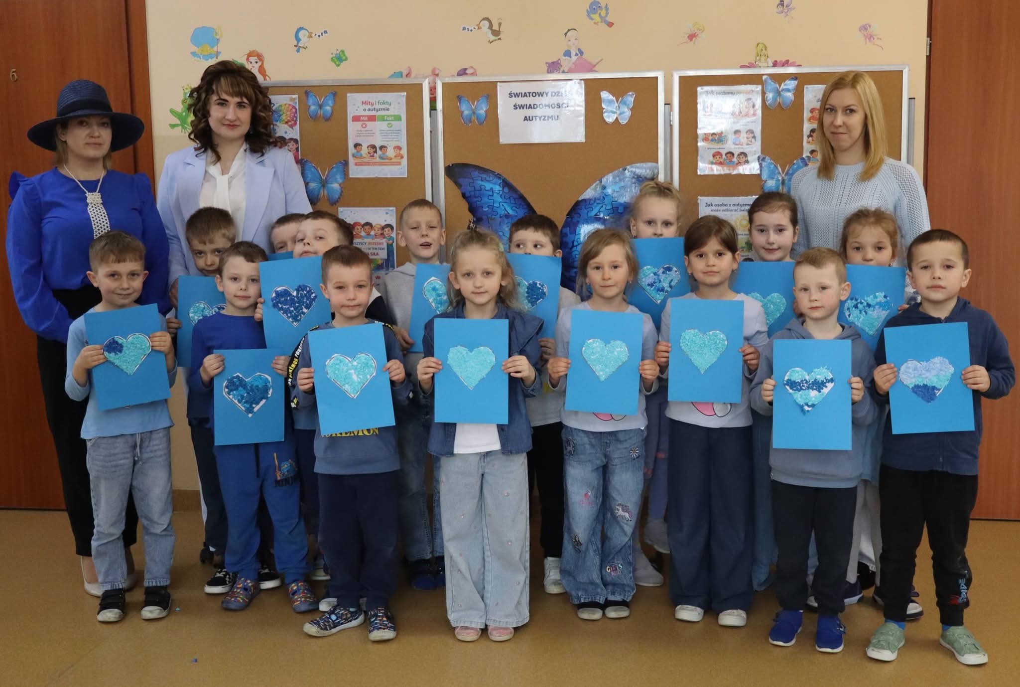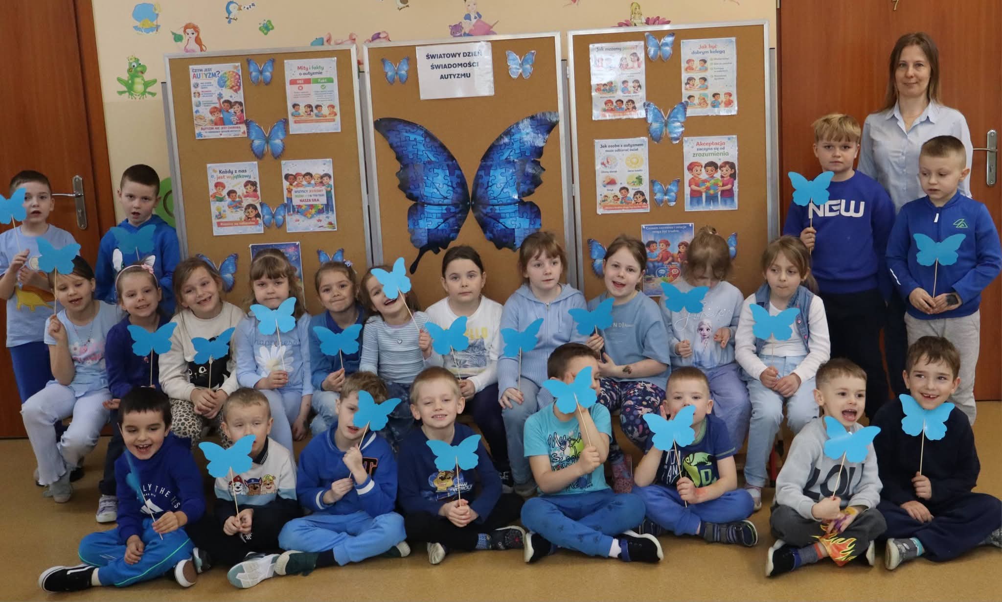 Dziś nasze Przedszkole rozbłysło na niebiesko. Wszystkie przedszkolaki oraz pracownicy ubrali się w tym kolorze, by okazać solidarność i wsparcie dla Osób ze Spektrum Autyzmu.