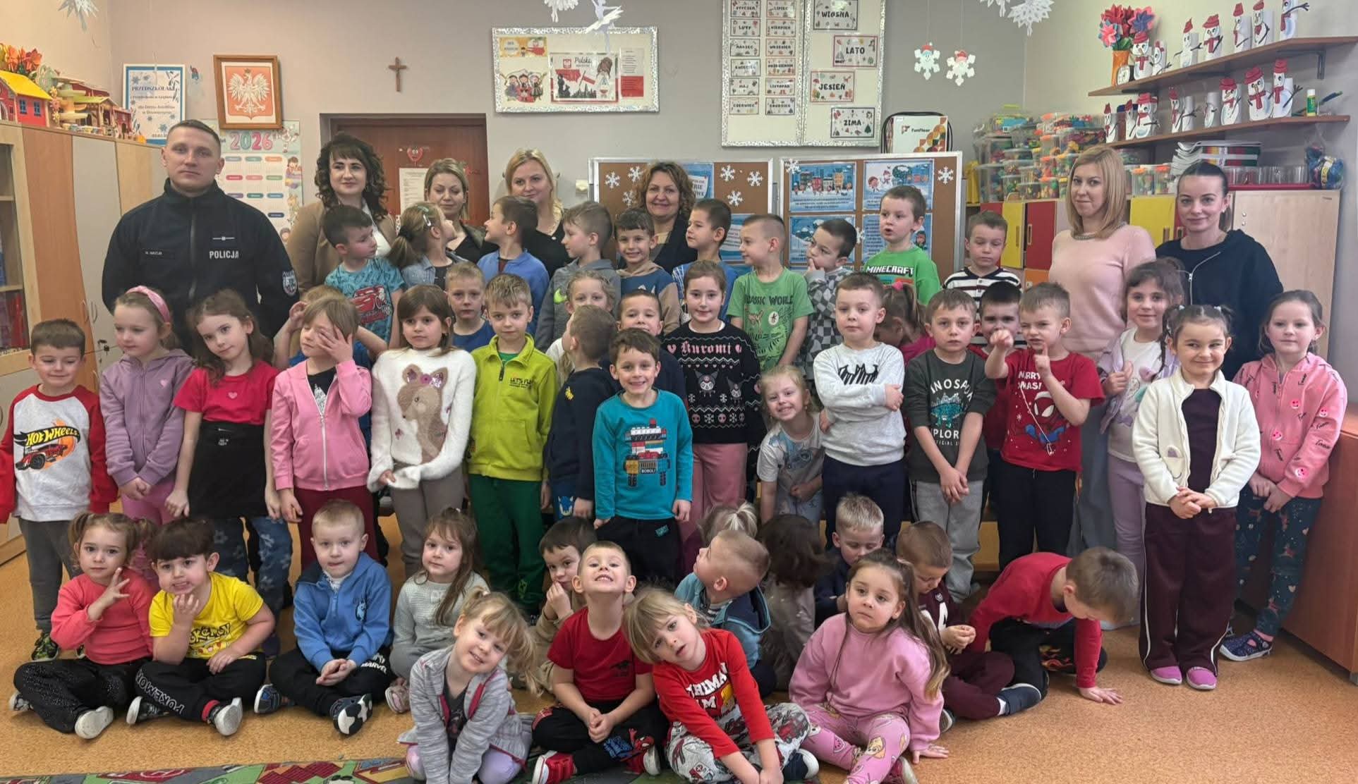 W naszym przedszkolu odbyło się wyjątkowe spotkanie z Panem Mateuszem – policjantem z Posterunku Policji w Grębowie.