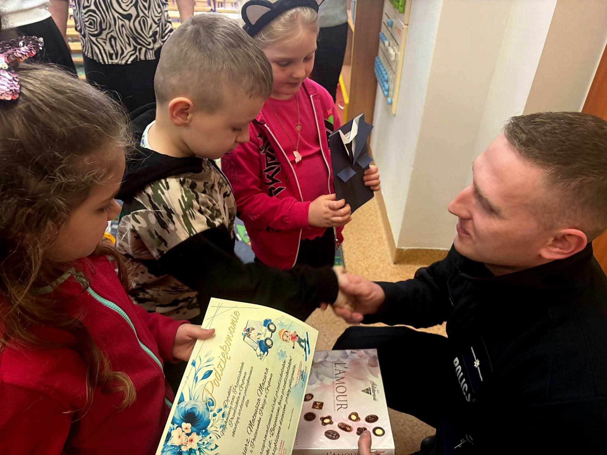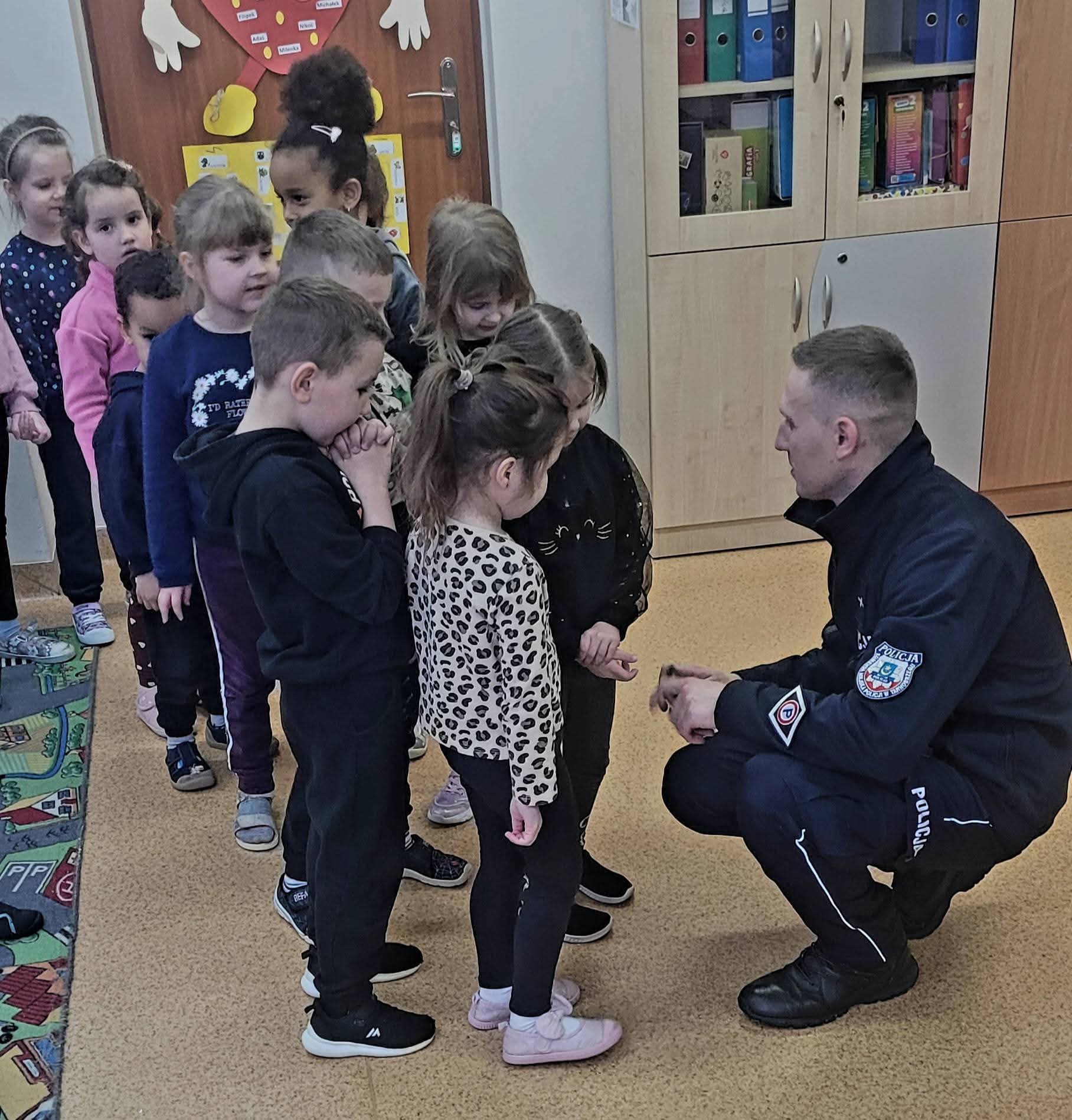 aby czuć się bezpiecznie. Podczas spotkania Pan Mateusz przybliżył dzieciom swoją codzienną pracę.